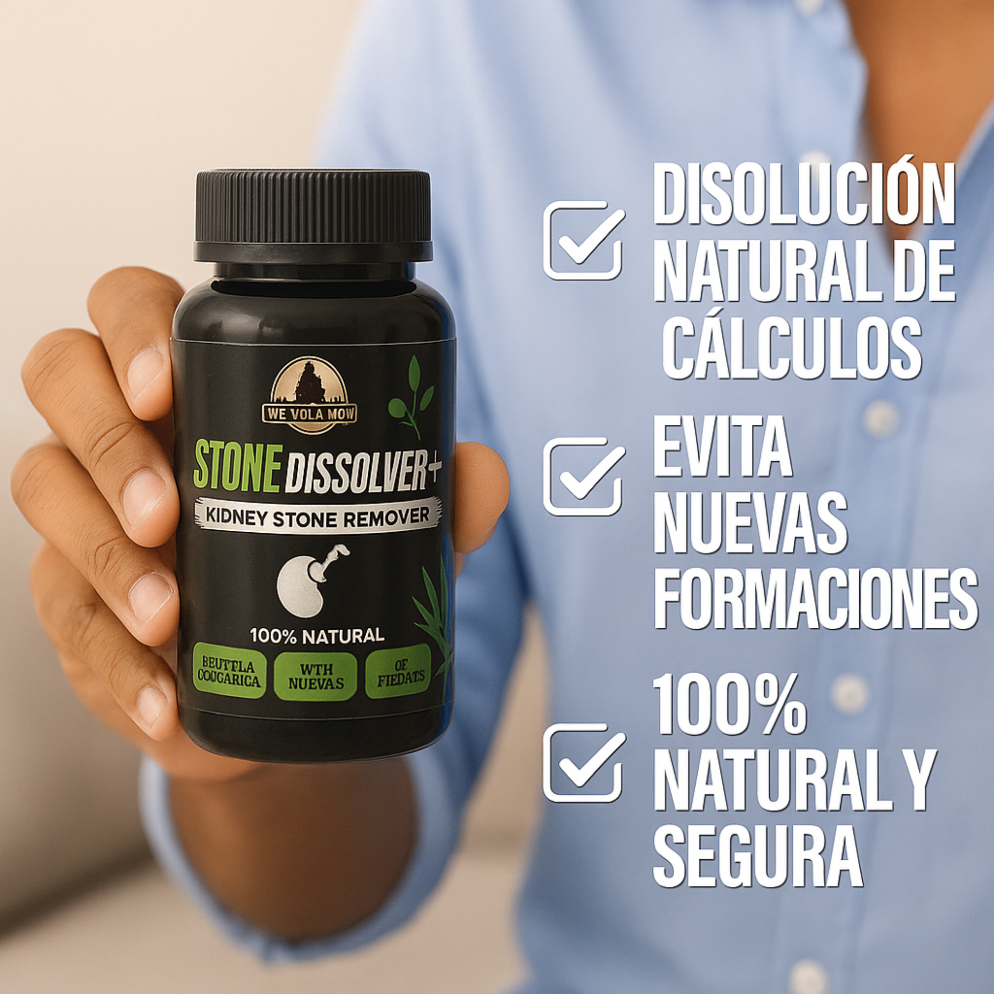 “Stone Dissolver+ apoya la disolución de piedras y protege la salud de tus riñones de forma segura y natural.”
